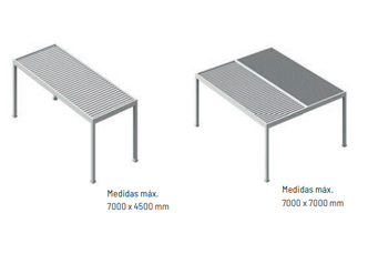 La pérgola se fabrica únicamente motorizada, emplea un motor de 24 Vcc. que se encuentra integrado en una de las vigas. Esto garantiza que frente a las inclemencias del tiempo no sufra ningún desperfecto.